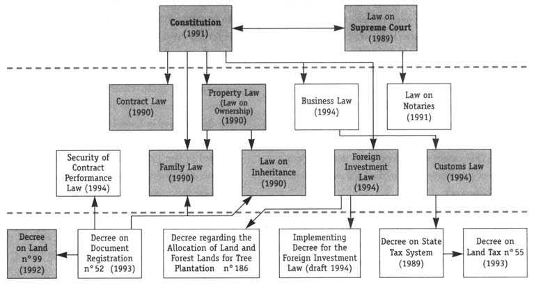 WITHOUT FOLLOWING THE EASTERN European trend, Communist Parties still govern Vietnam, Laos and the military rules Myanmar. In Cambodia, a coalition government was formed in 1982 against the Vietnamese invasion, leading to the multi-party system in 1991 when peace was reached, but the Communist Party still rules a part of the country and fights the government. Agricultural land is state-owned in Vietnam, Laos and Myanmar. In Cambodia it is owned collectively and privately. Since the mid-1980s, they have all turned to market-oriented rural development with good results and are at the lower stage of the Chinese model. Usufruct rights to land were given to households in Myanmar in 1962 (but agriculture was neglected then), in Cambodia in 1980, in Laos in 1986 and in Vietnam in 1988 similar to feature I of the Chinese model. Privatization of land ownership is intended in the state-controlled area of Cambodia, but might not be beneficial in the long run and should be re-considered. In order to wipe out poverty, development along the Chinese model should be strengthened.