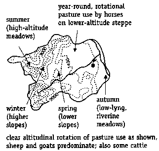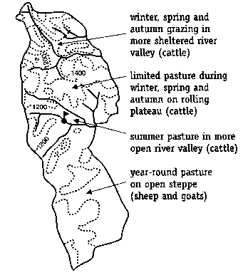 Private households exercised customary use rights over specific areas, defined in relation to the ecological resource base, and they customarily owned areas of pasture which they used during winter and spring.