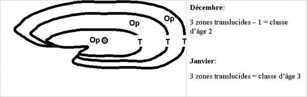 Figure 9. Exemple d'interprétation d'âge (Op - opaque; T - translucide).