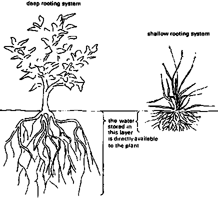 Figure 5. Plants with deep roots take up water over a greater depth than shallow rooting plants