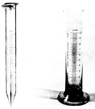 A measuring cylinder, standard for the instrument in use, should be of clear glass or plastic. The diameter of the measuring cylinder should not be more than one third of the diameter of the rim of the gauge. Graduations should be clearly engraved in 0.2 mm graduations. The measuring procedure is to pour the rain water from the storage contained into the measure and to read the value from the graduations. If there has been considerable rainfall, this may have to be done in two or more stages. The bottom of the water meniscus should be taken as the defining line. When reading, the cylinder should be held vertically. The empty storage vessel is then returned to the gauge and the collector replaced.
