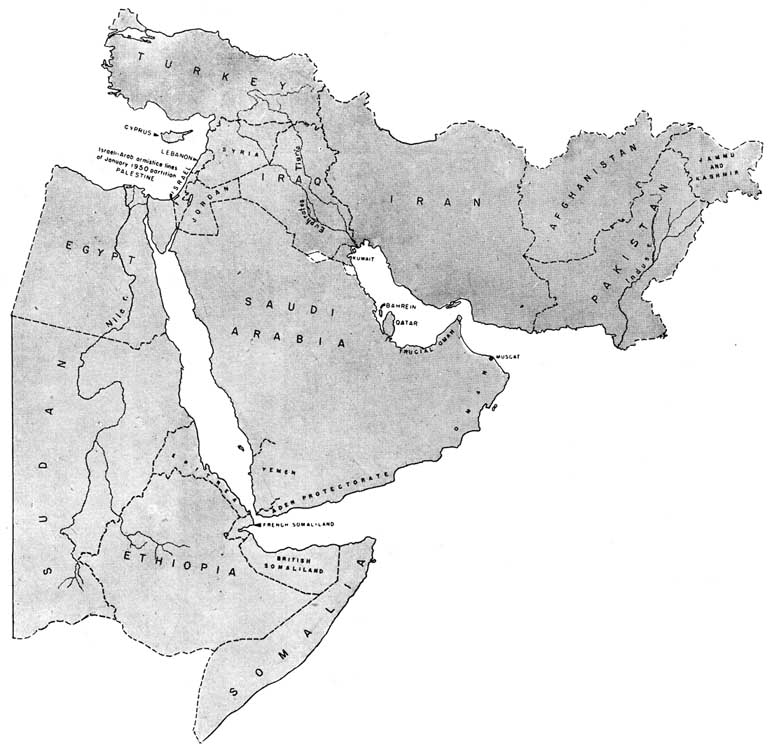 Certains groupes des pays d'Afrique et d'Asie sont, depuis longtemps, désignés par les géographes sous le nom de Proche Orient et Moyen-Orient. Ces termes sont interprétés de différentes façons. La FAO possède un Centre régional du Proche-Orient, dont la direction est au Caire, mais dont la juridiction s'étend à l'Afghanistan. Actuellement, certains gouvernements musulmans, membres de la FAO, appartenant à cette région en visagent de créer un corps forestier régional pour coordonner la documentation et les projets, et pour établir un échange d'idées, d'hommes et de matériel en vue de livrer une bataille commune. En ce qui concerne cet article, les pays intéressés à ce programme sont désignés collectivement sous le nom de Moyen-Orient.
