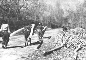 La bois marchand est fourni uniquement par les espèces riveraines telles que Platanus orientales, Juglans regia et Fraxinus rotundifolia, ainsi que par des plantations de peupliers. Les méthodes de vidange ne sont pas très modernes, qu'il s'agisse du bois d'uvre ou du charbon de bois; ce dernier est ensaché et transporté à dos de mulets ou par camions. Malgré les importations, la demande nationale de produits forestiers de tous genres dépasse considérablement les disponibilités.