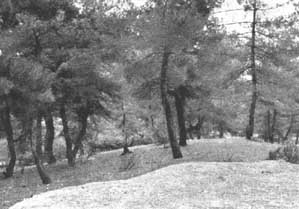 4. Forêt de Pistacia. Quelques individus reliques de ce genre se rencontrent çà et là, apparemment vestiges de forêts plus étendues, mais ne formant plus que quelques groupes d'arbres disséminés, que l'on ne peut même pas qualifier de forêt claire. Ils n'ont pas d'associés, excepté Retama raetum, Artemisia herba-alba et Atriplex spp., à Wadi el Butum, et souvent il n'existe qu'une maigre végétation vivace quelconque.