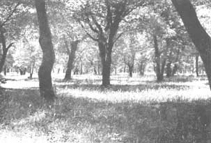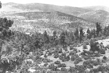 Il y a une grande différence entre les forêts qui s'étendent sur les rives est ou ouest du Jourdain. Les premières; en dépit d'abus anciens, montrent des signes de reconstitutions, grâce à la protection dont elles ont fait l'objet pendant ces cinq ou six dernières années. Quelques-unes des forêts de chênes, telle que celle de Wadi Sham, sont très denses, et les forêts de pins de Dibbin se régénèrent remarquablement bien. Sur la rive ouest, il n'y a aucun doute que jusqu'en 1947, il existait plusieurs zones boisées en excellent état, mais après les troubles de 1947-48, de vastes étendues de forêts paraissent avoir été complètement dévastées; même avant cette époque, il y avait de continuels empiècements sur les réserves. Le pacage par les chèvres a complètement arrêté la régénération, et, actuellement, les réfugiés de Palestine aggravent encore la situation en coupant les arbres, et même en déracinant la végétation basse, créant ainsi un sérieux problème d'érosion.