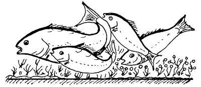 | Dans certaines régions d'EUROPE, la carpe est encore élevée en MONOCULTURE dans de grands étangs (5 – 200 Ha), où elle est nourrie à l'aide de grains. |  |