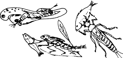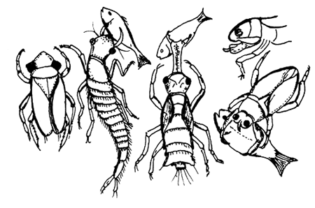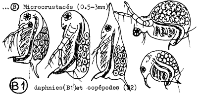 | Cyclops taille de moins de 1mm (copépode prédateur) | Insectes et larves d'insectes carnivores. |
