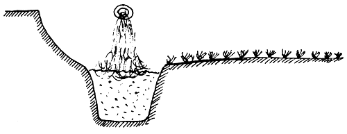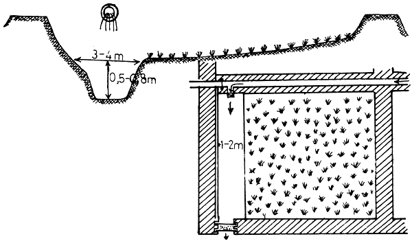 | (3) Laissez arriver une légère alimentation en eau dans le fossé, 10 à 20 1./minute. |