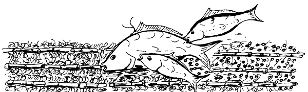 | Sur les bottes d'herbes sèches se développe une grande quantité de nourriture propre aux alevins | Fixez des bottes d'herbes sèches le long des digues, à 5m l'une de l'autre… |