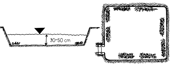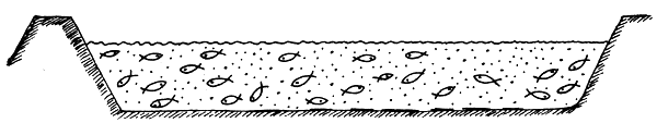 | (2) Placez dans ce fossé 2–3 bonnes femelles et 3–4 bons mâles. |