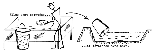 | (5) Elles doivent alors être transférées dans les étangs de premier alevinage. |