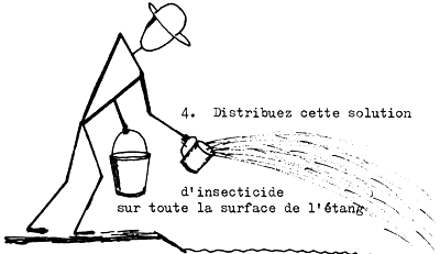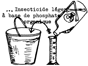 | 2. Mettez dans un seau d'eau autant de cm3 d'insecticide qu'il y a de m3 d'eau dans l'étang. |  |