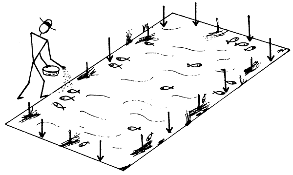 | Placez plusieurs géniteurs dans un grand étang dont le fond, couvert d'herbes ou de plantes aquatiques submergées, convient à la reproduction. |
