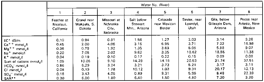 TABLE 34 Compositions of river waters used for irrigation (after Rhoades et al. 1974)