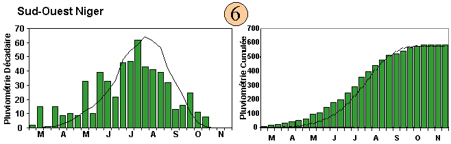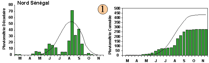 Evolution des valeurs des images de durée de présence des nuages à sommets froids (CCD) sur différentes zones du Sahel