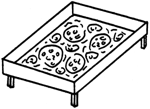 Soft manure is shovelled into a basket of parallel iron rods (approx. 2–2.5cm apart), suspended 10–20cm below the water line, attached to the side of a boat, and dispersed as the boat moves and forces water into the basket (Figure 17, B1).