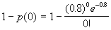 Si la variable suit une loi de Poisson, la probabilité de prélever au moins une sangsue dans un nouvel échantillon peut être calculée par 1 - p(0), ce qui donne :