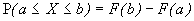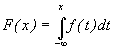 Le symbole ò indique l’intégration, analogue de la sommation dans le cas discret. Comme dans le cas discret, F(X) représente la probabilité que la variable prenne une valeur inférieure ou égale à x. Une propriété utile de la fonction de distribution cumulative est la suivante,