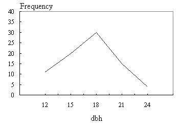 Figure 2.2. Polygone de fréquence illustrant la distribution de fréquence des dbh