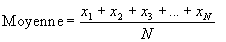 Moyenne arithmétique : La moyenne arithmétique, ou moyenne, d’une série de N nombres x1, x2, x3, …, xN est notée