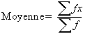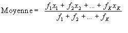 Si les nombres x1, x2, …, xK apparaissent respectivement f1, f2, …, fK fois (c’est à dire s’ils apparaissent avec les fréquences respectives f1, f2, …, fK) la moyenne arithmétique est