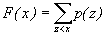 Si les valeurs de x peuvent être rangées dans un ordre, comme dans le cas de nombres réels, on peut définir une fonction de distribution cumulative,