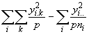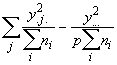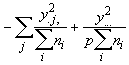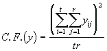 *Etape 1. Dans l’analyse de la covariance, la première étape consiste à calculer la somme des carrés due aux différentes composantes, pour la variable y et la covariable x, comme pour une analyse de la variance, à l’aide des formules indiquées ci-après :