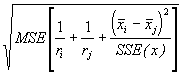 L’erreur-type dans l’appréciation de la différence entre deux moyennes ajustées est donnée par: