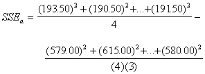 *Etape 4. Faire la synthèse des résultats comme dans le Tableau 3.21 et effectuer les calculs restants pour obtenir les carrés moyens et les rapports F, en utilisant les équations reportées dans le Tableau 3.17.