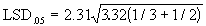 Les moyennes des traitements sont comparées selon la méthode décrite pour le PER dans la Section 4.2.3 à l’aide de la formule
