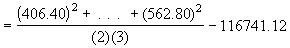 et soustraire la valeur calculée de B ( 2.00) de la somme des carrés des traitements et de la somme totale des carrés. Dans notre exemple, la SSTO et la SST calculées dans l’étape 2 à partir des données augmentées du Tableau 4.10, sont respectivement de 680.12 et de 432.09. En soustrayant la valeur de B ( 2.00) de ces valeurs de SS, on obtient la SST et la SSTO ajustées: