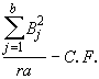 *Etape 3. Apporter les modifications suivantes à l’analyse de variance de l’étape 2; Soustraire 1 du df total et du df de l’erreur. Dans notre exemple, le df total tombe de 23 à 22 et df de l’erreur de 14 à 13. Calculer le facteur de correction du biais (B)