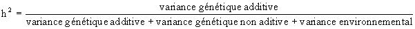 Les variations observées dans un groupe d’individus comprennent une part de variation génétique, ou héréditaire, et une part de variation non héréditaire. La fraction héréditaire de la variation totale est appelée coefficient d’héritabilité au sens large. La variance génotypique peut elle-même être subdivisée en variance génétique additive et non additive. Le rapport de la variance génétique additive à la variance phénotypique totale est appelé coefficient d’héritabilité au sens strict et est désigné par h2. On a donc,