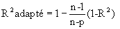 où R2 est le coefficient de détermination, donné par le rapport de la somme des carrés de régression à la somme totale des carrés (voir Section 3.7)