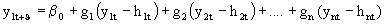 Ici le nombre d’arbres dans la plus petite classe de taille est exprimé en fonction du nombre total d’arbres dans toutes les classes de taille et de la récolte pendant un certain intervalle de temps. Sur la même période de référence, les nombres d’arbres dans les plus grandes classes de taille sont des fonctions des nombres d’arbres dans les classes de taille adjacentes. Il est possible d’estimer ces paramètres par une analyse de régression en utilisant des données provenant de parcelles-échantillons permanentes en précisant le nombre d’arbres, et leur état, dans les différentes classes de diamètre, à chaque période, avec un intervalle de temps donné, ainsi que le nombre d’arbres abattus entre deux mesurages successifs.