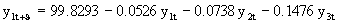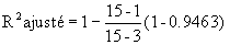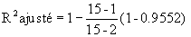 En regroupant les données respectives du Tableau 6.13, et en effectuant comme d’habitude l’analyse de régression linéaire multiple (Montgomery et Peck,1982), on obtient les estimations suivantes.