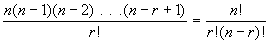 Combinaisons : Une combinaison de n objets différents pris r à r est une sélection de r objets parmi les n objets, sans tenir compte de l’ordre dans lequel ils sont rangés. Le nombre de combinaisons de n objets pris r à r est noté