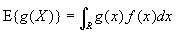 Dans le cas de variables continues, la définition de l’espérance est modifiée comme suit. Soient g(X) une fonction d’une variable aléatoire continue X, et f(x) la fonction de densité de probabilité de X. L’espérance mathématique de g(x) est alors donnée par