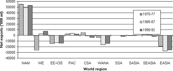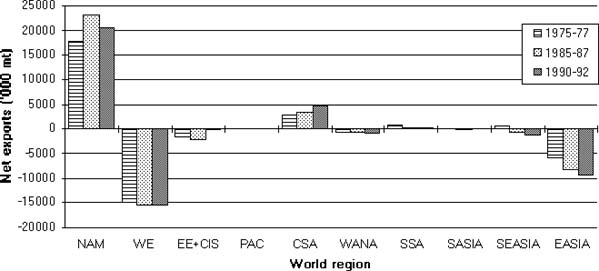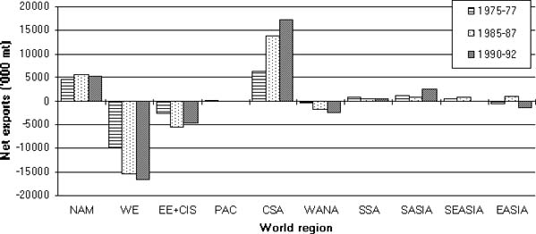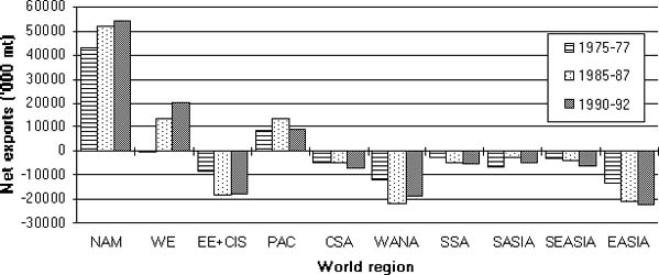 A number of regional trade agreements now exists (see FAO 1994), with the general aim of facilitating intra-regional trade. Increasingly, these will be influenced by the same issues and policies underlying the GATT. They may have considerable local impacts on production and trade in some commodities. NAFTA in N America is estimated to double coarse grain imports to Mexico in the next 10 years, mainly from increased production in USA, and to reduce maize area in Mexico by 17% (US Feed Grains Council 1994). Trade in oilseeds and meals may also increase with Canada and Latin American countries joining NAFTA (such as Venezuela) benefitting most (Oil World 1994).