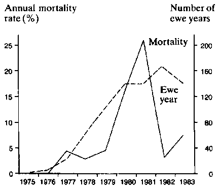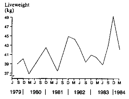 In an earlier investigation into characteristics of ewes lambing for the first time at El-Huda (Sulieman et al, 1985) lambs conceived for the first time when they weighed about 20 kg.