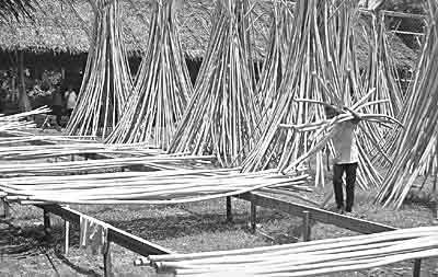 Séchage à l'air de tiges de rotin au Kalimantan (Indonésie)