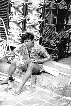 D'autres importants problèmes inhérents à l'utilisation du rotin concernent les techniques de production, le financement et la commercialisation. De nombreux petits transformateurs de rotin, qui uvrent au niveau du village, et travaillent avec des outils rudimentaires, manquent des compétences techniques nécessaires et produisent des modèles désuets. Leur accès au marché est restreint par la qualité inférieure de leurs produits (Belcher, 1999).