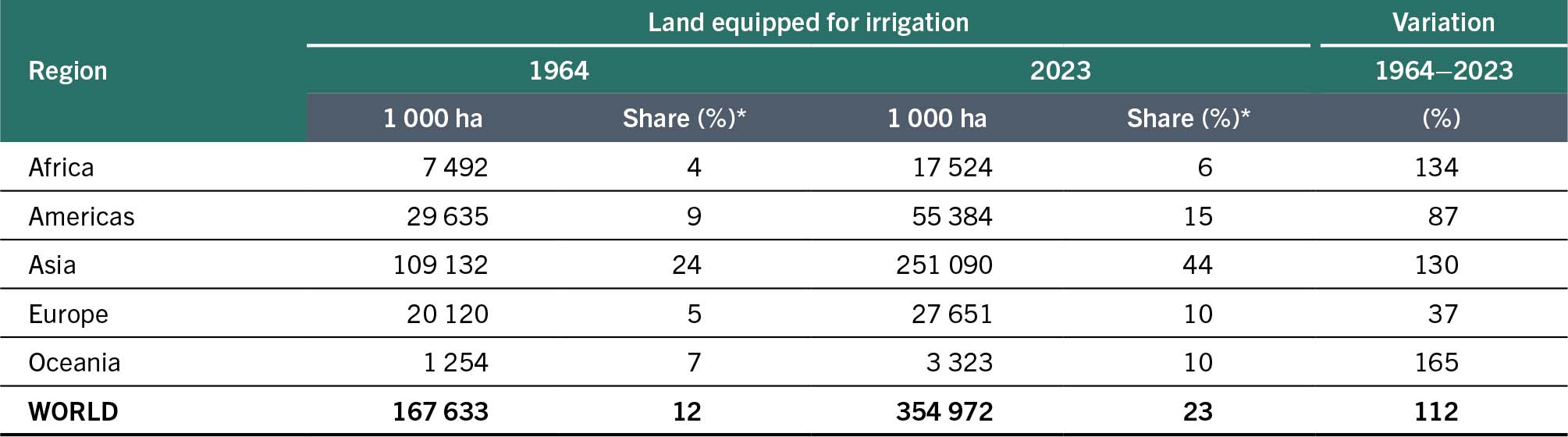 TABLE 6 EVOLUTION OF LAND EQUIPPED FOR IRRIGATION, 1964–2023