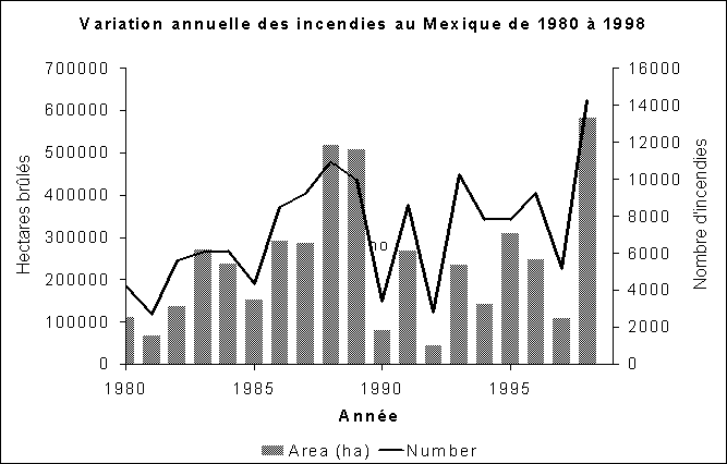 Les grands incendies de forêt qui se sont produits dans le monde entier pendant la sécheresse intense due au phénomène El Niño de 1997-1998 ont focalisé l'attention du public et des médias sur la nécessité d'évaluer les politiques et les pratiques des secteurs forestier et non forestier qui contribuent, directement ou indirectement, à l'impact des incendies de forêt. L'ampleur de ces incendies et les dommages qui leur sont attribués sont si énormes que le Christian Science Monitor a qualifié cette année de "l'année où la terre a pris feu". Par moments cela semblait littéralement vrai lorsque des voiles de fumée recouvraient de vastes étendues à l'échelle d'une région entière, perturbant la navigation aérienne et maritime et menaçant sérieusement la santé publique. Les incendies ont fait soixante-dix victimes rien qu'au Mexique, et des écosystèmes qui ne sont généralement pas touchés par les incendies, comme la forêt tropicale humide amazonienne et la forêt de montagne du Chiapas au Mexique, ont subi des dommages considérables.