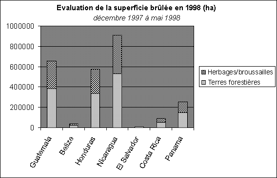 Un rapport de situation daté du mois de juin produit par le Bureau de l'assistance aux pays étrangers en cas de catastrophe (Office of U.S. Foreign Disaster Assistance 1998) soulignait la gravité des conditions liées à la sécheresse, favorisant la combustion en Amérique latine. En 1998, le Mexique et toute l'Amérique centrale ont été frappés par une sécheresse exacerbée par le phénomène El Niño. La sécheresse a aggravé les effets de l'agriculture sur brûlis dans les zones forestières et les formations herbacées, laissant des centaines d'incendies en combustion. La sécheresse a rendu la terre plus aride et donc plus inflammable, mais elle a aussi éliminé l'effet nettoyant habituel des pluies sur l'air de la région. Les incendies ont gravement affecté la visibilité et la qualité de l'air au Mexique, au Guatemala, au Nicaragua, au Honduras, à El Salvador, et au Costa Rica. La fumée de ces incendies a aussi envahi les états du sud et du Middle West des Etats-Unis, suscitant au niveau local des avertissements adressés aux habitants ayant des problèmes cardiaques et respiratoires et aux enfants, leur demandant de limiter leurs activités d'extérieur. Soixante-quinze pompiers et habitants locaux ont perdu la vie en luttant contre les incendies au Mexique; ceux-ci ont brûlé plus de 582 000 hectares16. Dans toute la région, le fonctionnement des aéroports situés dans les zones touchées a été perturbé et les procédures de contrôle du trafic aérien ont été gênées par la fumée et les brumes sèches de fumée rémanentes. Le gouvernement des Etats-Unis a consacré au total plus de 7 millions de dollars US au soutien des efforts de lutte anti-incendie au Mexique et en Amérique centrale.