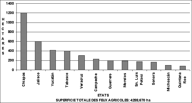 Entre 1989 et 1994 les indices d'efficacité de l'extinction se sont été améliorés, avec 7153 incendies touchant 213 010 ha, soit une superficie de 28,9 ha par incendie. Ces chiffres placent le Mexique au même rang que des pays comme l'Espagne, la Yougoslavie, la France, la Grèce; des pays comme le Canada et l'ex-URSS dépassent ces taux, avec 181,2 et 58,1 ha par incendie respectivement.