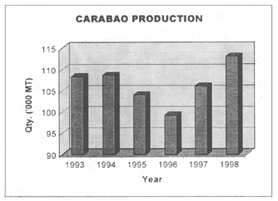 Carabao. A very minimal increase in the 1997–1998 carabao inventory was observed as compared with the pre-crisis period figures of 1990–1996. The 1997 figure of 2 988 000 head rose only to 3 025 000 head in 1998. Growth in carabao inventory sharply declined, from 5.17 percent in 1997 to 1.24 percent in 1998, whilst growth of production remained almost unchanged.