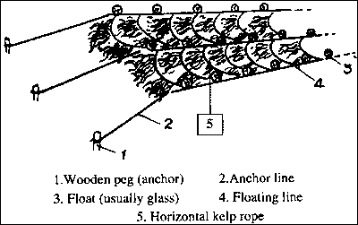 Hanging-kelp raft (after Tseng 1987).