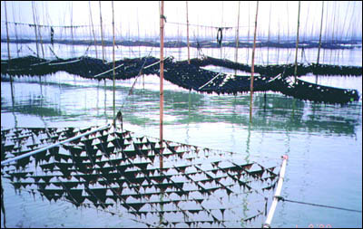 Horizontal-line raft with Laminaria japonica (Yanti, China).