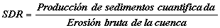 El coeficiente de aporte de sedimentos (SDR) se utiliza normalmente en los estudios sobre erosión y transporte para indicar hasta qué punto el suelo erosionado (sedimento) se almacena dentro de la cuenca. El SDR se define así: